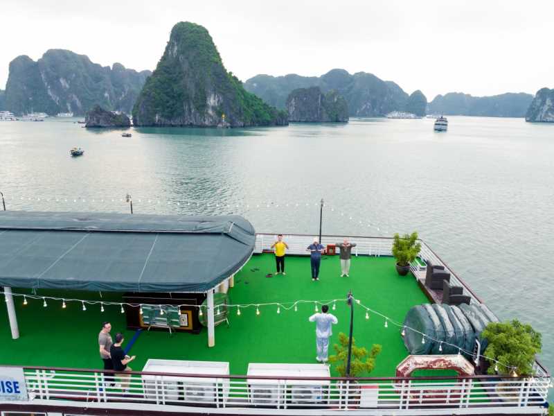 06:00 Warm up your day with a Tai Chi lesson on the sundeck with a breathtaking view as the sunrises on Halong Bay. Sunrise photo-hunting in the bay is once a lifetime experience; however, this activity is not mandatory. You can choose to stay in bed.07:00 - 07:30 Light breakfast is served at the restaurant.