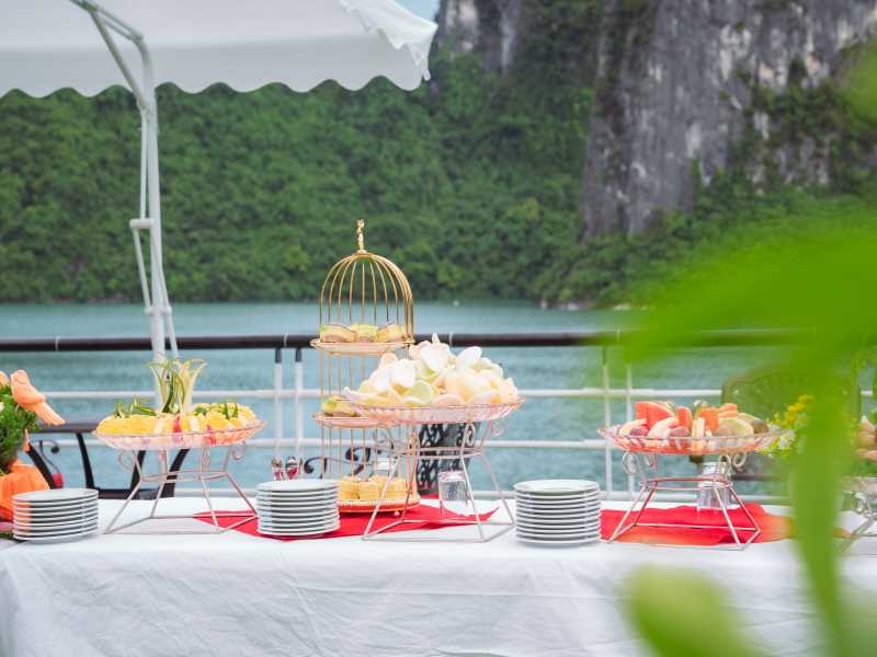 12:00: Arrive at Tuan Chau Harbor, get on Luxury Cruise with our crew’s warm welcome