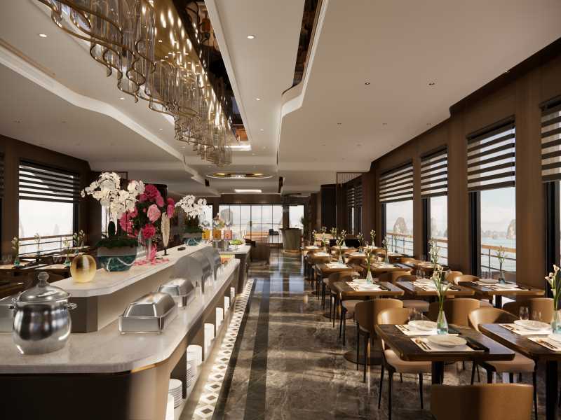 17:30 - 18:30: Sunset Party and Happy Hour is the ideal time to sip a cup of hot tea while watching the sunset on the bay or you can soak in the Jacuzzi on the sundeck, sunbathe and freely visit and take pictures. In particular, guests have the opportunity to participate in the Happy Hour program “Buy 2 drinks, get 1 drink free” at the bar.
