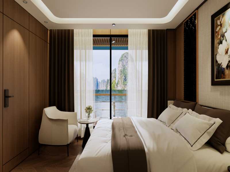20:45: After finishing dinner, you can enjoy the landscape of the bay at night up on the top deck, relax with romantic ballad music, enjoy drinks from the bar try your luck at squid fishing, watch a movie, enjoy Spa treatment, relax in your room. Overnight on board.