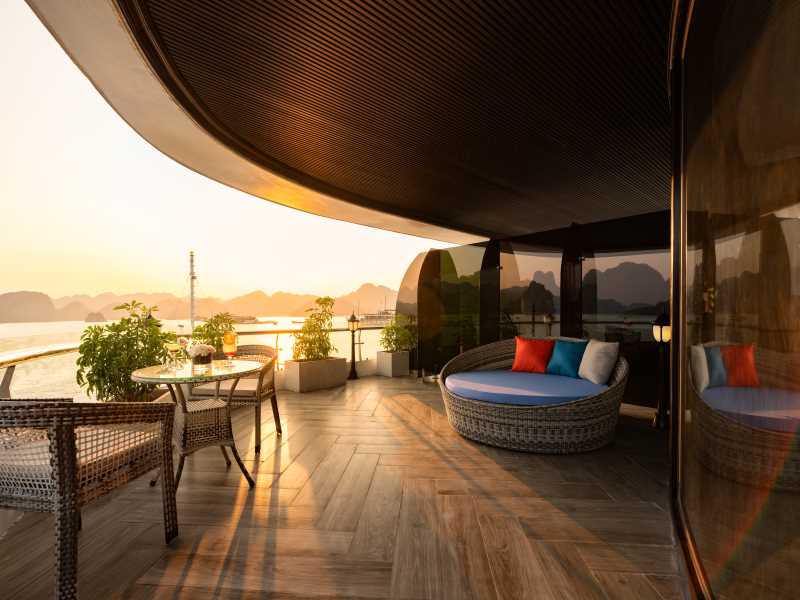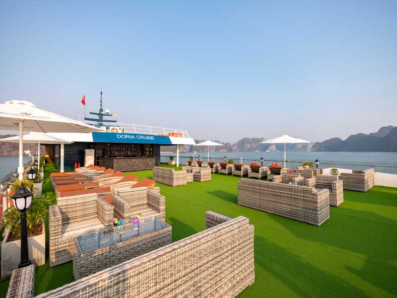 + Option 3: Use the Jacuzzi (Located at the prow of the 3rd deck), or you can do sunbathing on the Sundeck At the Reception We Provide: Life jackets, Towel.