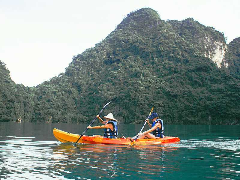 13:30 Kayaking or bamboo boat rowed by locals through water caves. You can have a chance to discover an amazing Lagoon. Once you pass through the tunnel, the space opens into a perfectly circular lake.