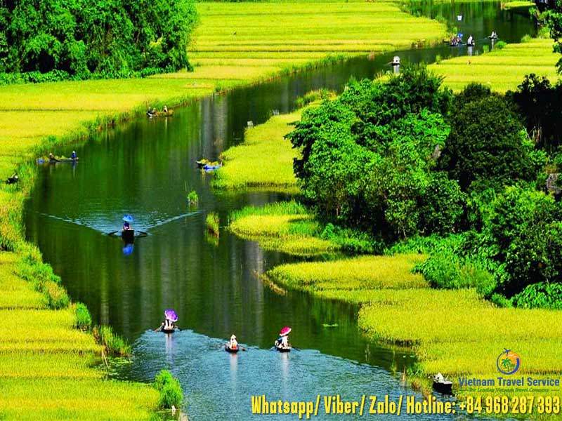 Option 1 : Tam Coc, known as “Halong Bay on the land”, where you will spend 1.5 hours on the boat to explore this area. On this excursion down the Ngo Dong River, you will pass through the beautiful paddy fields, limestone karst formation, and a stunning cave system including Hang Ca, Hang Hai, and Hang Ba caves for a unique experience.