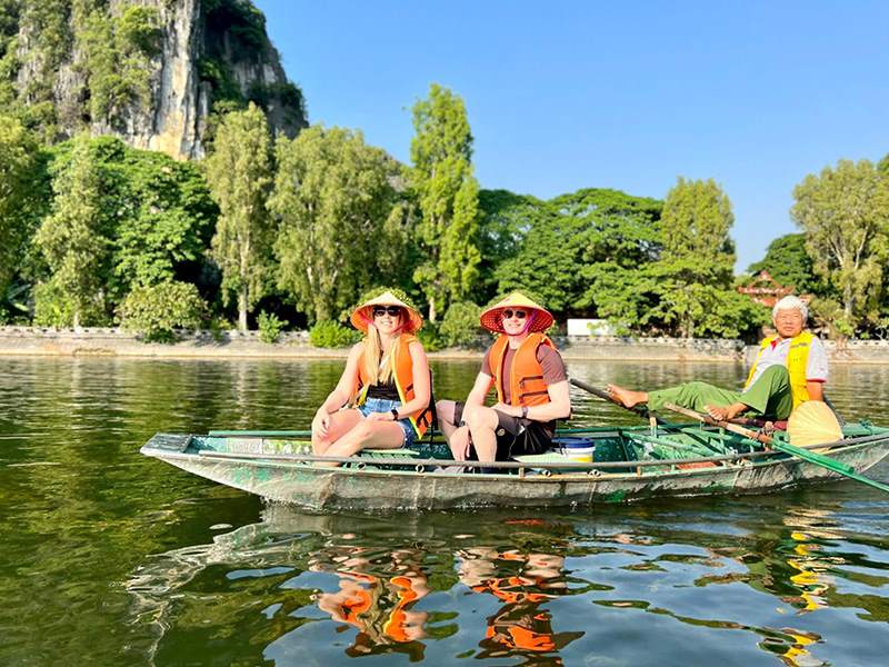 13:30: Visit Trang An, a World Heritage Site recognized by UNESCO in 2014. There, you can spend 1.5 hours on the boat ride to enjoy the beauty of this place, which has a beautiful tunnel cave system and appears in the movie Kong in 2016 - “Skull Island”.