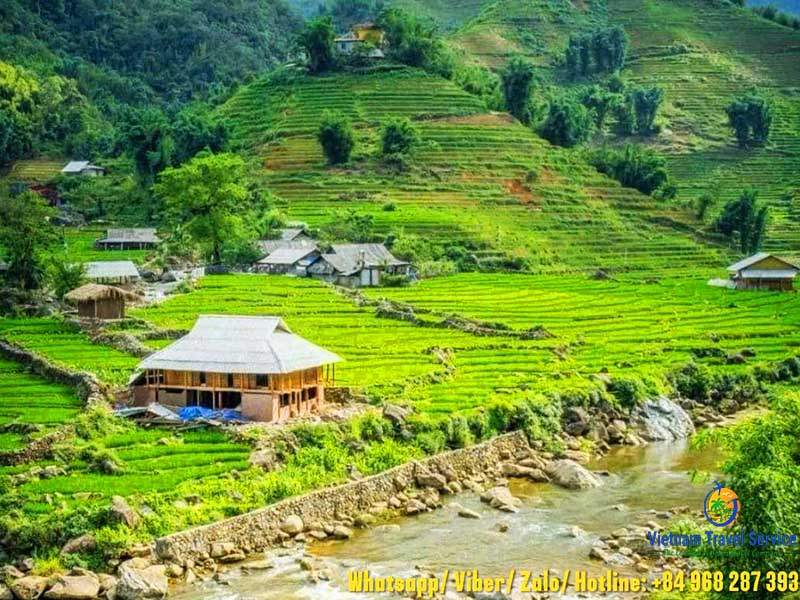 09:30: Begin trekking from Sapa to Y Linh Ho, then continue through the rice terraces and along Muong Hoa Stream to Lao Chai, the Black Hmong village, where you can admire the spectacular scenery of the Hoang Lien Son Mountain range.