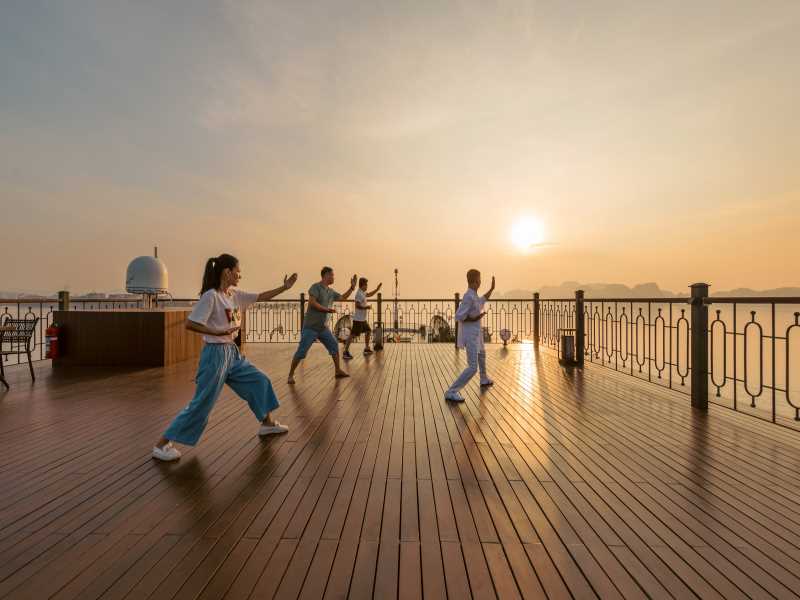 06.00 Continental breakfast: Coffee, tea and breakfast pastries served in the restaurant.06.30 Enjoy Tai Chi lesson on the sundeck (lasting for about 30 minutes).