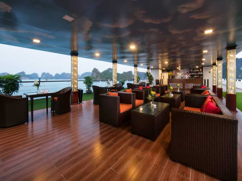 Enjoy the nightlife of the bay from the deck. Immerse yourself in music. Taste some cocktail at the bar. Otherwise, you can go for the squid fishing with the sailors or simply relax in the room and watch Ha Long Bay from the balcony.