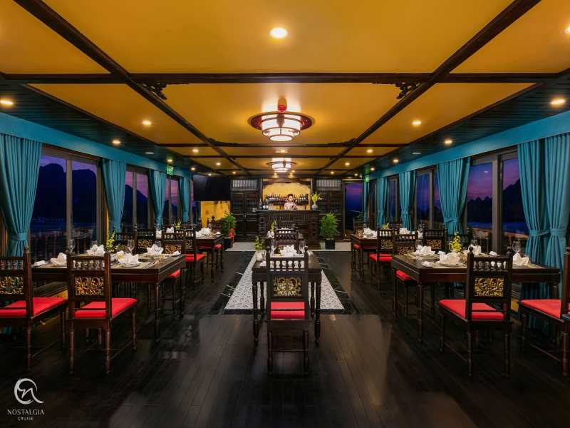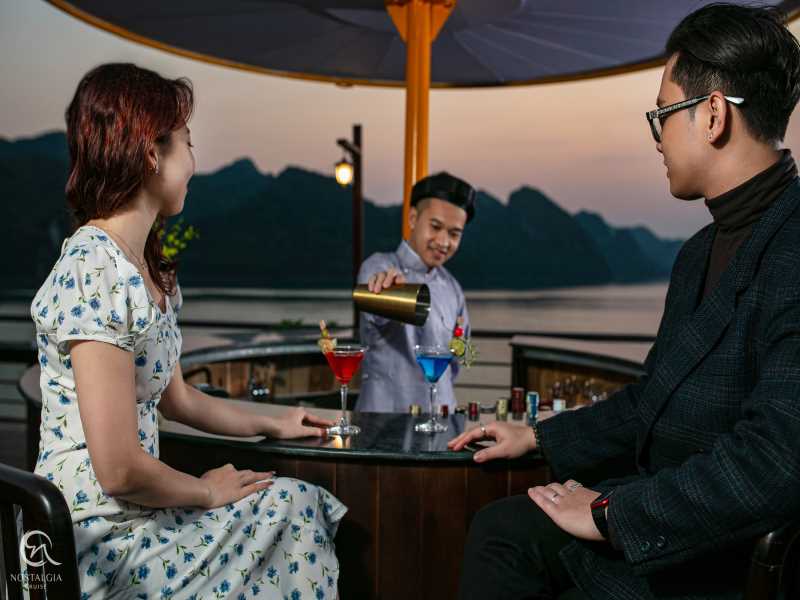 16:00 - 16:30 Return to Nostalgia Cruises. Guests may join a cooking class, take a swim at the untouched area, or enjoy the Happy Hour (buy 1 get 1) at the bar while watching the magnificent sunset over the Gulf of Tonkin.