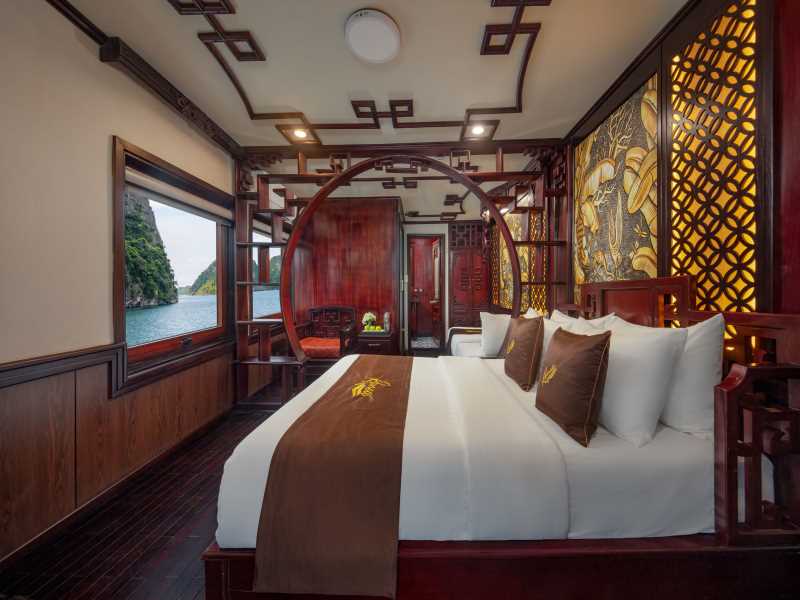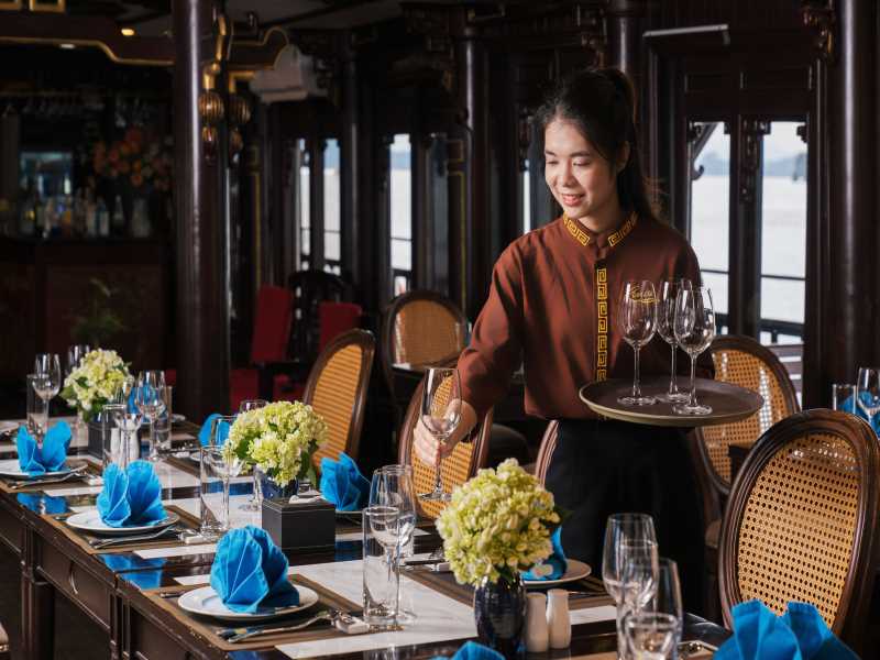 07.30 - 8:00: Our shuttle bus will pick you up from your hotel in Hanoi.12.00: Arrival in our office at Halong International Cruise Port, you will have a bit time to relax and enjoy a cup of coffee. Wait for our captain to finish the registration. Transfer by tender to the cruise.