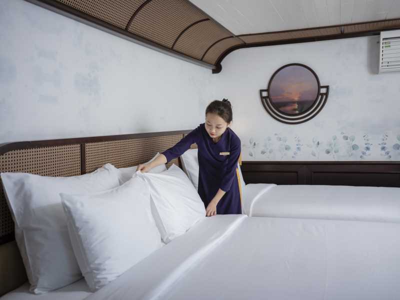 Warmly welcomed by Signature Team in Halong International Harbour. Complete the luggage check-in procedure at the waiting lounge before boarding for the cruise.