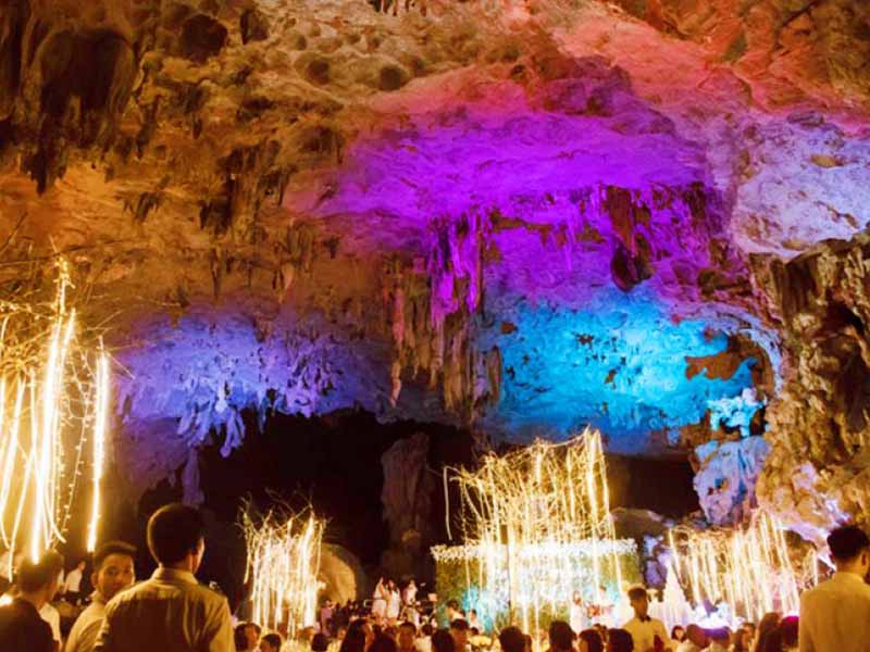 Relaxing on the boat with view of amazing limestone, we will continue the trip to the brilliant cave named “Me Cung” cave (Maze cave)