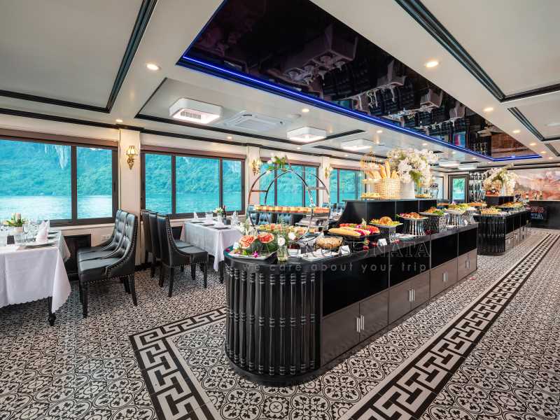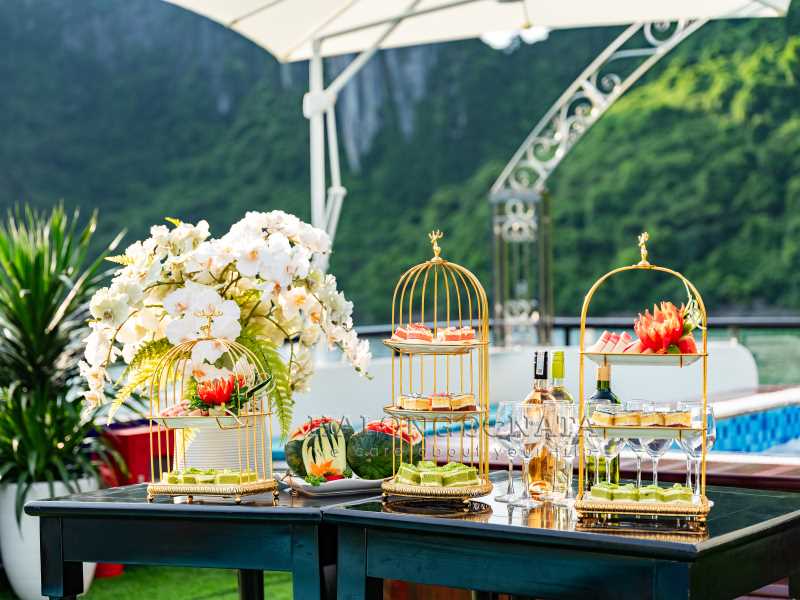 16:30: Returning to the ship for a Sunset Party, enjoying a Live Traditional Music Performance as the ship cruises back to Tuan Chau Harbor. You will have great time to chill out with friends on Upper deck with unforgettable moments.