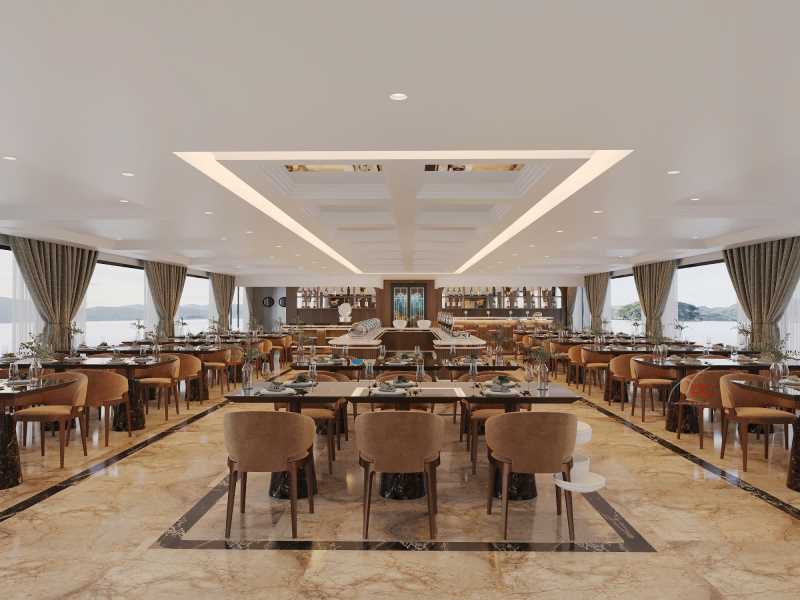 19:15 - 19:30 Delight in a seafood dinner featuring Vietnamese specialties on board. After dinner reward yourself with a large selection of cocktails at our bar, wine and cigars cellar or enjoy the landscape of the bay at night. Take one of our on-board activities like squid fishing, watching movies in the restaurant