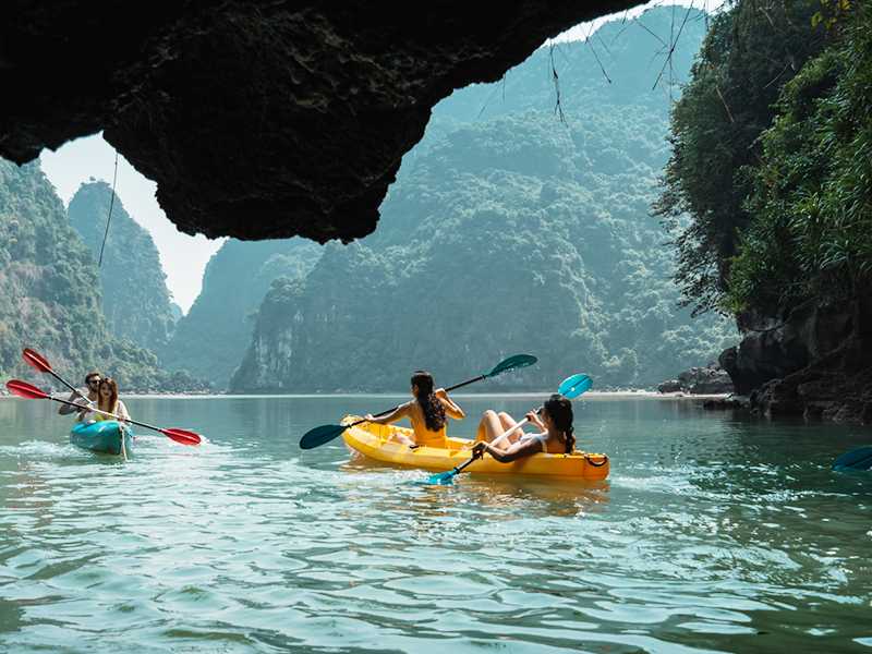 14:30 - 16:00 | The journey continues with an exploration of Luon Cave, where guests may choose to kayak or ride a traditional bamboo boat, gliding gently through natural rock arches and tranquil waters. The experience isfollowed by a visit to Titop Island, where guests can either hike to the island’s peak for a breathtaking panoramic view of Ha Long Bay, or unwindwitha refreshing swimonthe island’spristine white-sand beach.